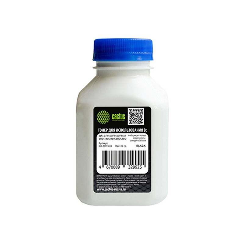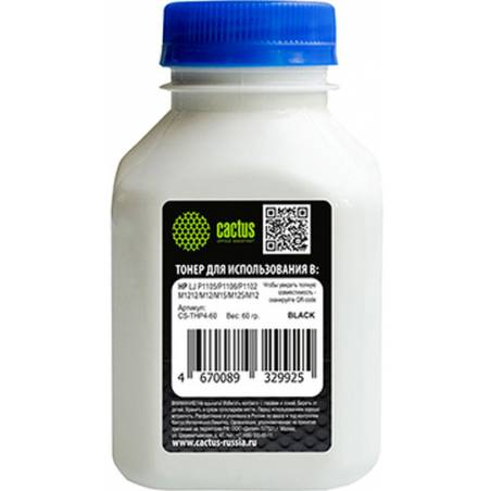 Тонер Cactus CS-THP4-60 черный флакон 60гр. для принтера CB436A/CE278A/CE285A/CF283A/CF244A/CF283X (для OEM)