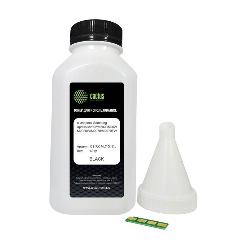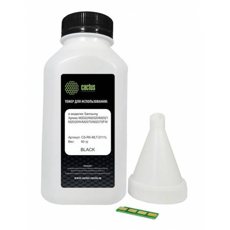 Тонер Cactus CS-RK-MLT-D111L черный флакон 60гр. (в компл.:чип) для принтера Samsung Xpress M2022/M2020/M2021/M2020W/M2070/M2070