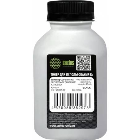 Тонер Cactus CS-TSG3BK-50 черный флакон 50гр. для принтера Samsung CLP Universal CLP-K300A/CLT-K404/406/407/409/504