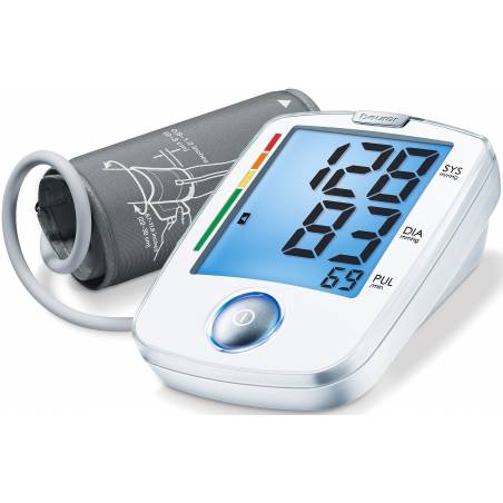 - Исключительно удобный прибор для измерения кровяного давления в плечевой артерии оборудован большим дисплеем с синей подсветкой и светящейся кнопкой включения. Выдача сообщений о неправильном применении.
