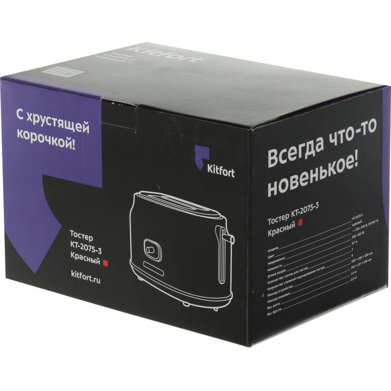 - Тостер Kitfort КТ-2075 создан для тех, кто любит полакомиться ароматным и хрустящим поджаренным хлебом. Особый вкус и цвет тостов получаются такими благодаря карамелизации сахара, содержащегося в муке, в процессе приготовления. Тостер оснащён регулятором