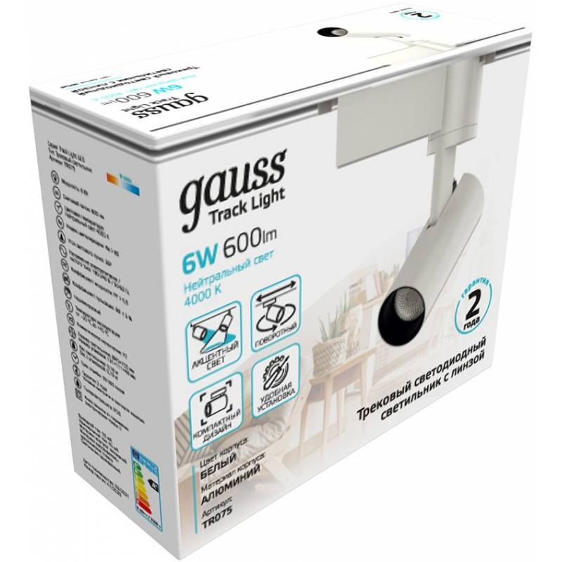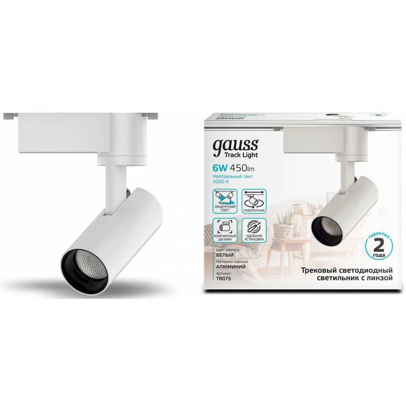 Светильник Gauss TR075 6Вт 4000K цв.св.:белый нейтральный белый