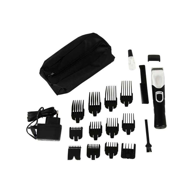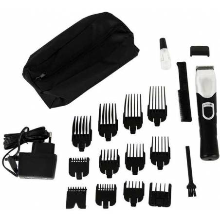 - зарядное устройство, масло, парикмахерская расческа, чехол, щетка для чистки машинки