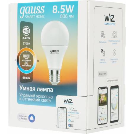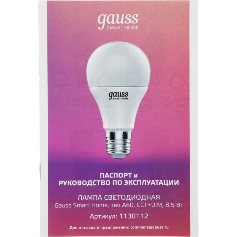 Умная лампа Gauss IoT Smart Home E27 8.5Вт 806lm Wi-Fi (упак.:1шт) (1130112)