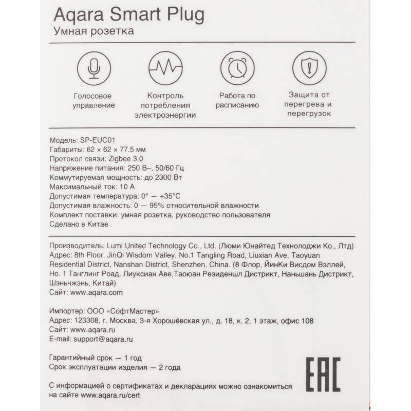 - Для работы умной розетки дополнительно требуется Aqara Hub