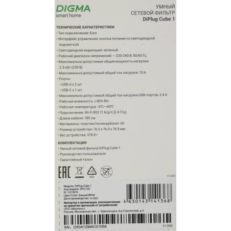 Умная розетка Digma DiPlug Cube 1 EU Wi-Fi белый (DPC13S)