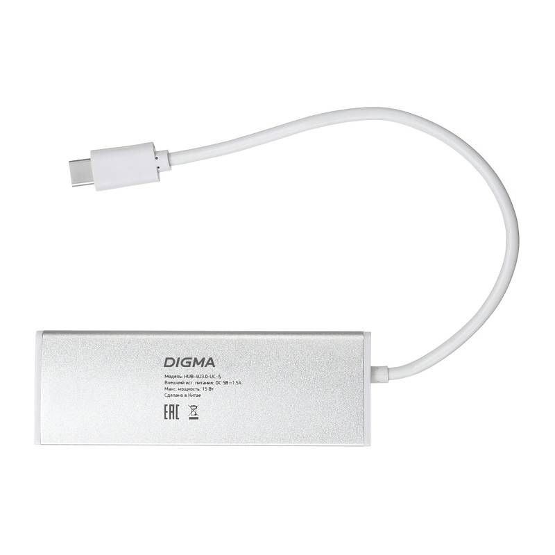 Разветвитель USB-C Digma HUB-4U3.0-UC-S 4порт. серебристый