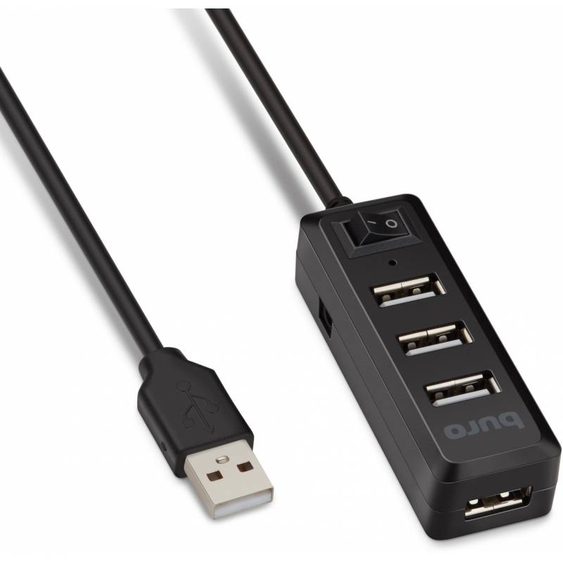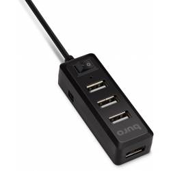 Разветвитель USB 2.0 Buro BU-HUB4-0.5L-U2.0 4порт. черный