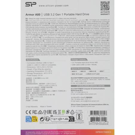 Жесткий диск Silicon Power USB3.0 1TB SP010TBPHDA80S3K A80 Armor 2.5" черный