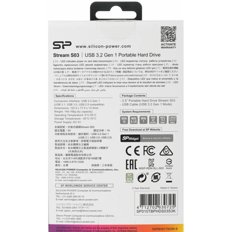 Жесткий диск Silicon Power USB 3.0 1Tb SP010TBPHDS03S3K S03 Stream 2.5" черный