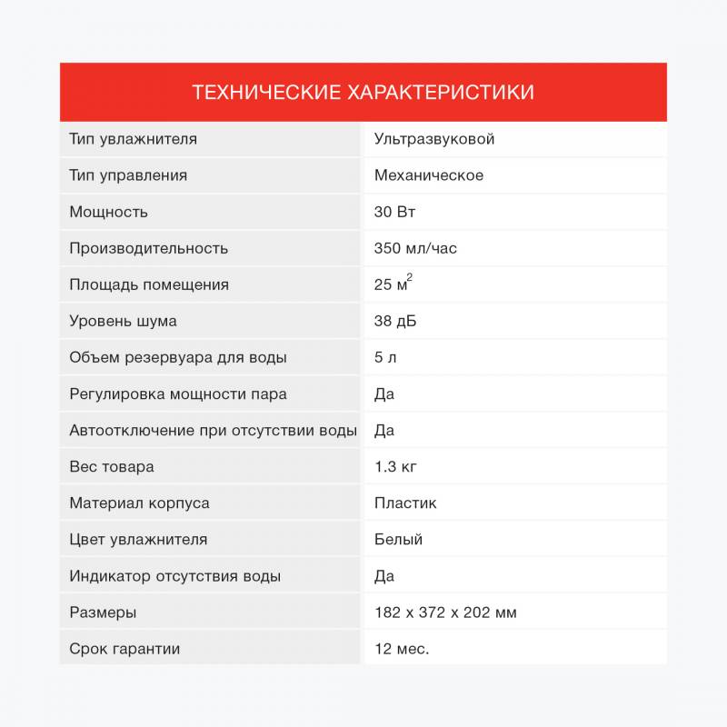 - Тип увлажнителя
