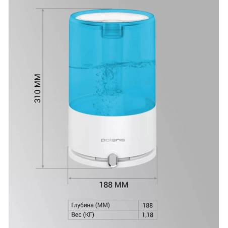 Увлажнитель воздуха Polaris PUH 7605 TF 25Вт (ультразвуковой) белый/голубой