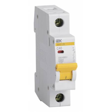 Выключатель автоматический IEK MVA20-1-040-C ВА47-29 40A тип C 4.5kA 1П 230/400В 1мод белый (упак.:1шт)