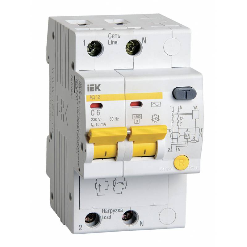 Выключатель автом. дифф. тока IEK MAD10-2-006-C-010 АД12 6A тип C 4.5kA 10мА AC 2П 230В 3мод белый (упак.:1шт)