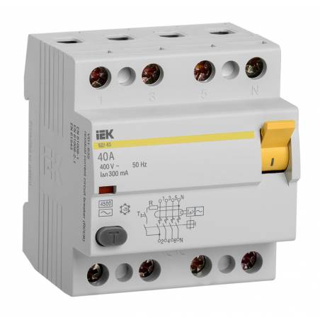 Выключатель дифф.тока УЗО IEK MDV10-4-040-300 ВД1-63 40A 300мА AC 4П 400В 4мод белый (упак.:1шт)