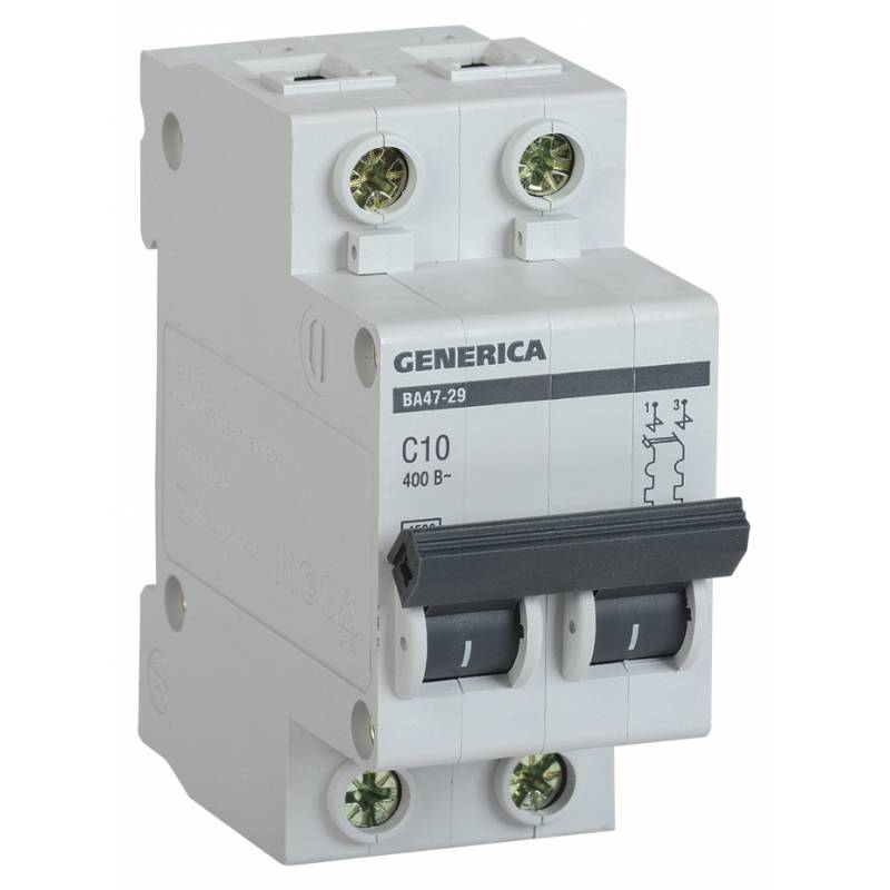 Выключатель автоматический IEK MVA25-2-010-C Generica 10A тип C 4.5kA 2П 400В 2мод серый (упак.:1шт)