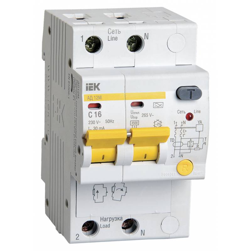 Выключатель автом. дифф. тока IEK MAD12-2-016-C-030 АД12М 16A тип C 4.5kA 30мА A 2П 230В 3мод белый (упак.:1шт)