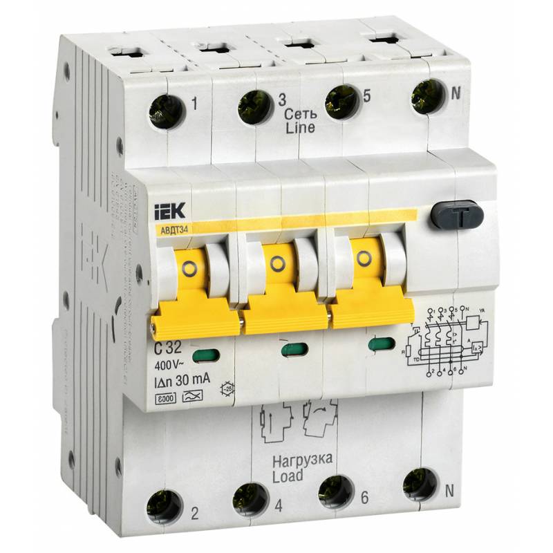 Выключатель автом. дифф. тока IEK MAD22-6-032-C-30 АВДТ 34 32A тип C 6kA 30мА A 4П 400В 4мод белый (упак.:1шт)