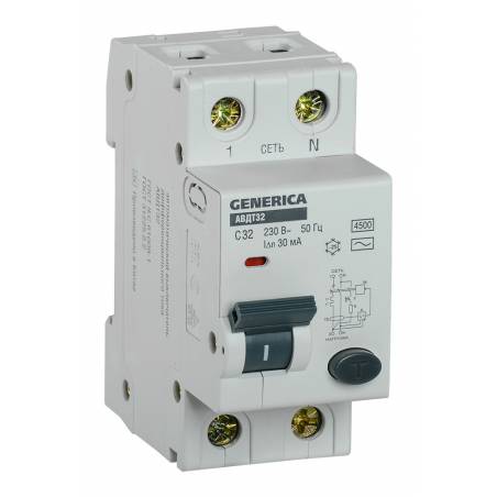 Выключатель автом. дифф. тока IEK MAD25-5-032-C-30 АВДТ 32 Generica 32A тип C 6kA 30мА AC 2П 230В 2мод серый (упак.:1шт)