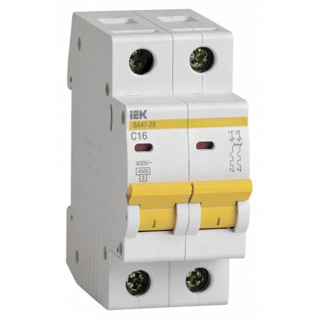 Выключатель автоматический IEK MVA20-2-016-C ВА47-29 2Р 16A тип C 4.5kA 2П 400В 2мод белый (упак.:1шт)