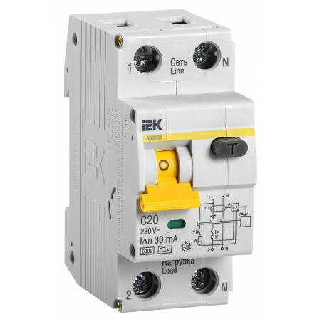 Выключатель автом. дифф. тока IEK MAD22-5-020-C-30 АВДТ 32 20A тип C 6kA 30мА A 1П+Н 230В 2мод белый (упак.:1шт)