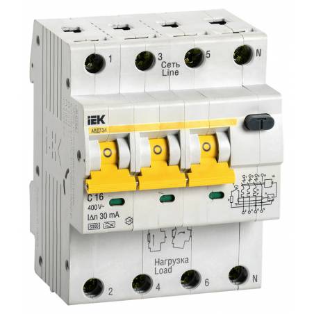 Выключатель автом. дифф. тока IEK MAD22-6-016-C-30 АВДТ 34 16A тип C 6kA 30мА A 4П 400В 4мод белый (упак.:1шт)