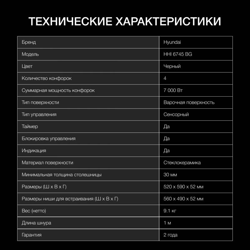 Индукционная варочная поверхность Hyundai HHI 6745 BG черный
