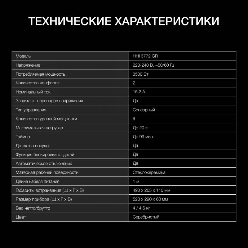 Индукционная варочная поверхность Hyundai HHI 3772 GR серебристый