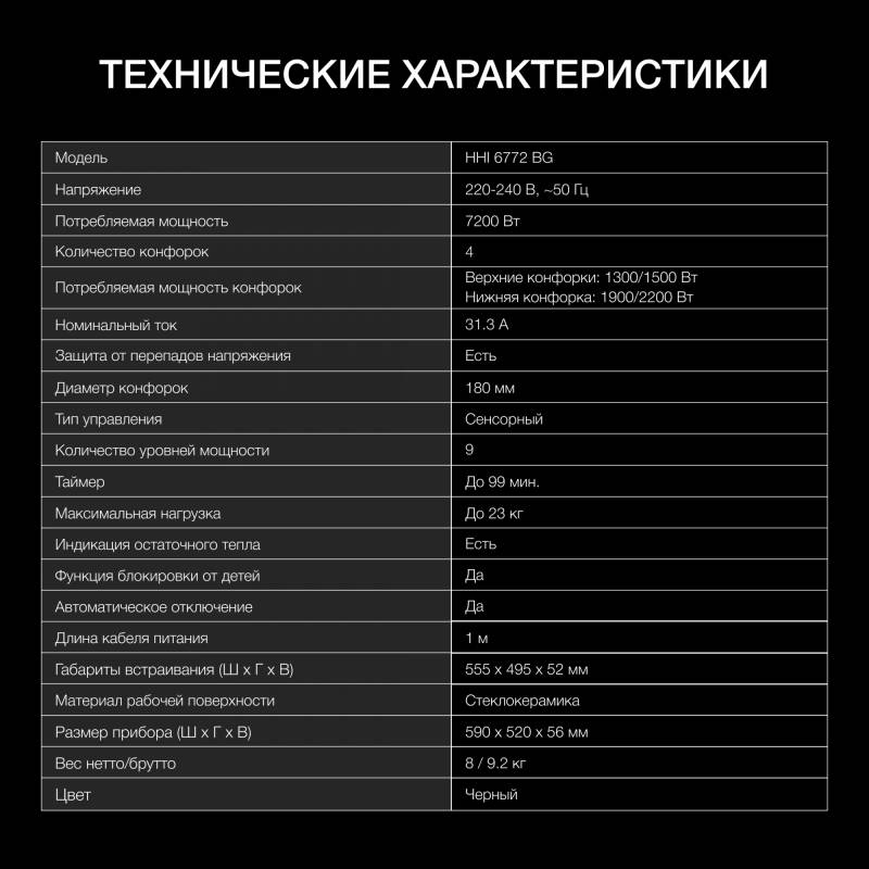 Индукционная варочная поверхность Hyundai HHI 6772 BG черный