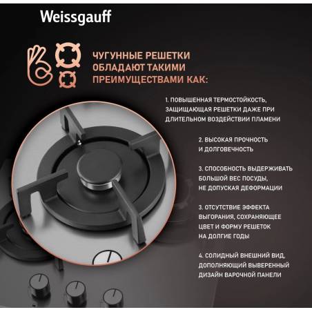 Газовая варочная поверхность Weissgauff HGG 431 XRV нержавеющая сталь