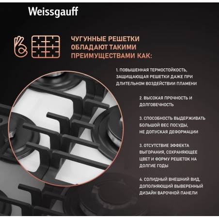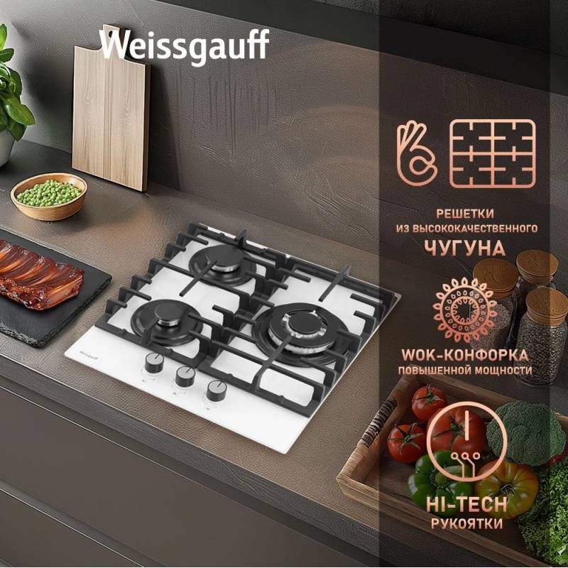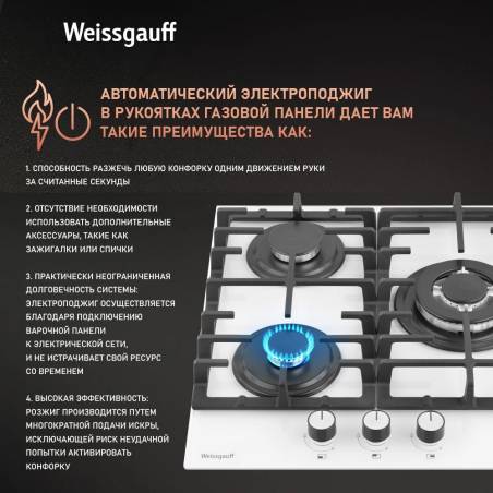 Газовая варочная поверхность Weissgauff HGG 451 WFV белый