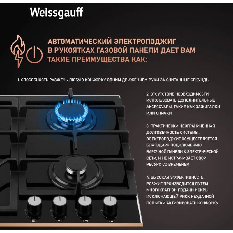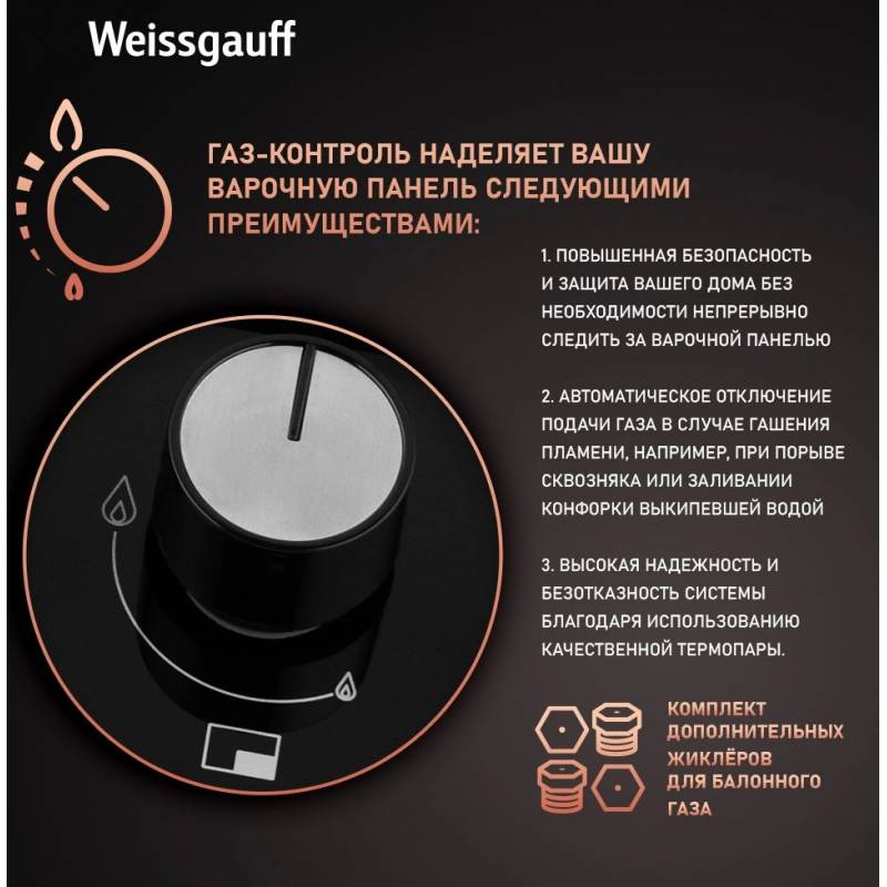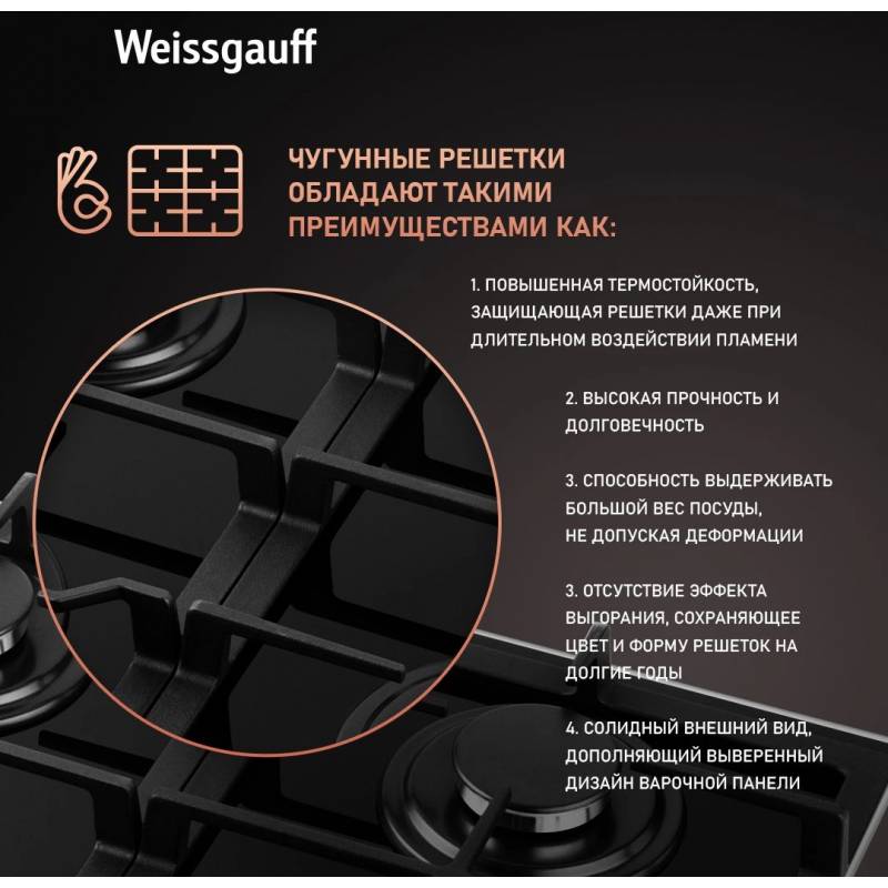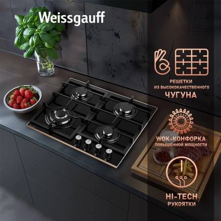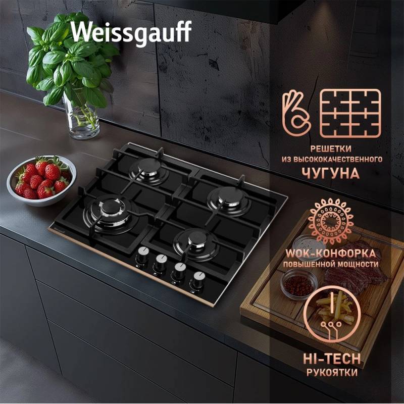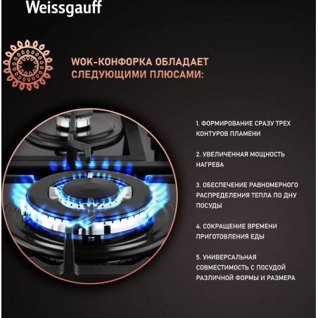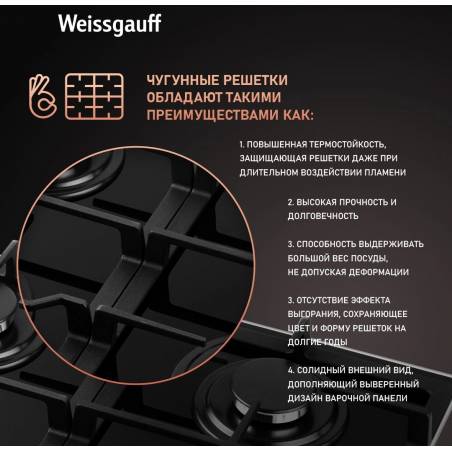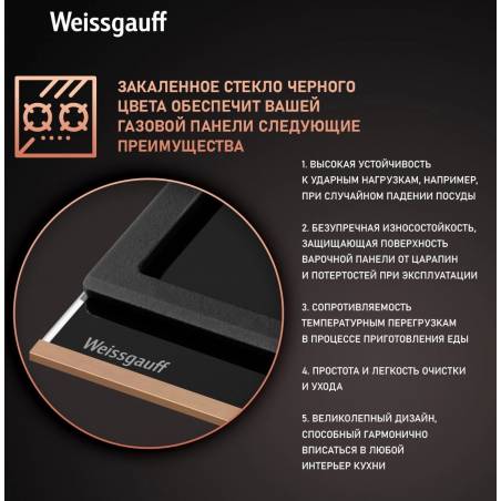 Газовая варочная поверхность Weissgauff HGG 649 BGRGV черный