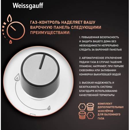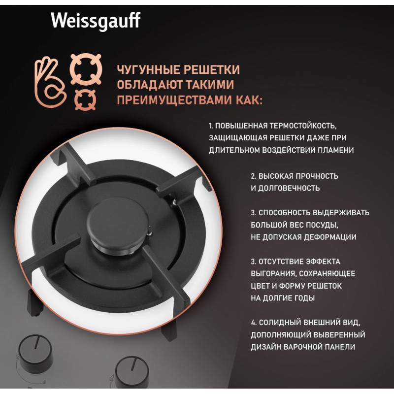 Газовая варочная поверхность Weissgauff HGG 320 WGRV белый