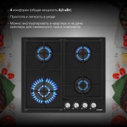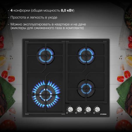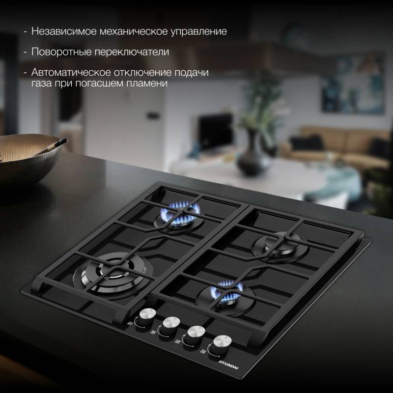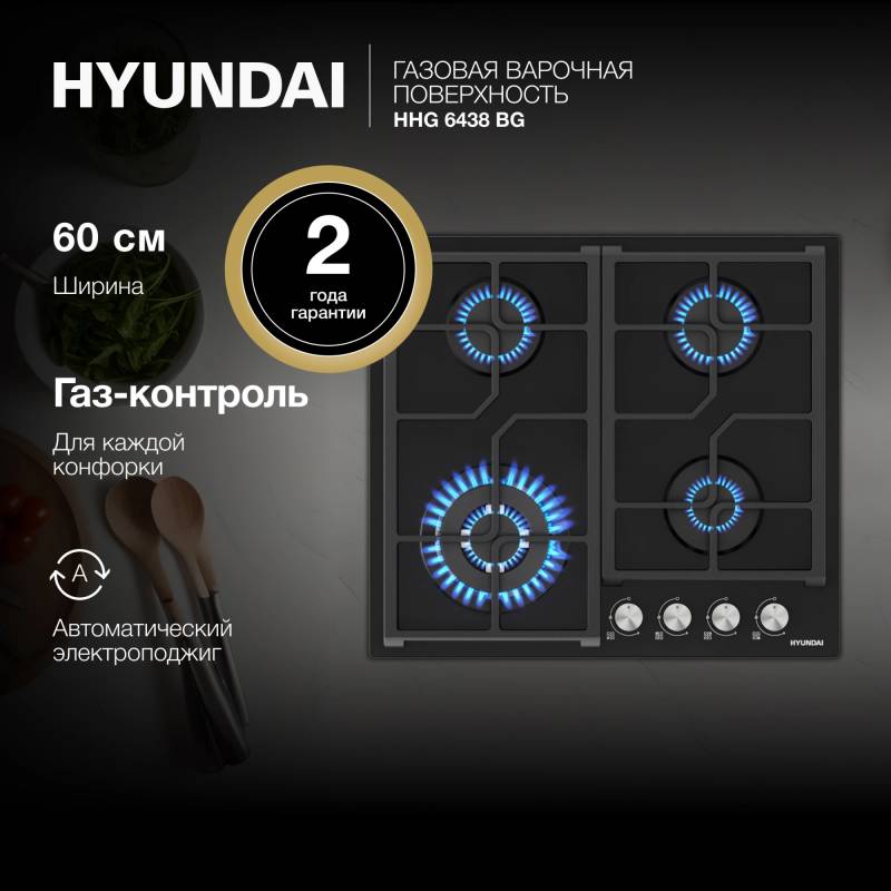 Газовая варочная поверхность Hyundai HHG 6438 BG черный