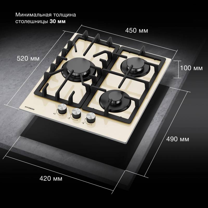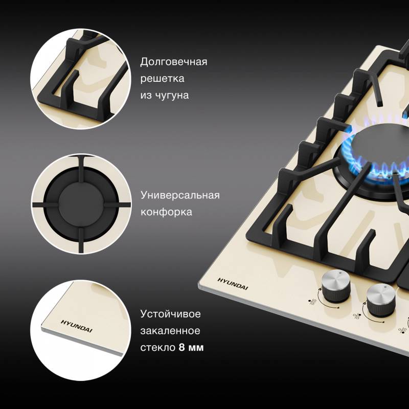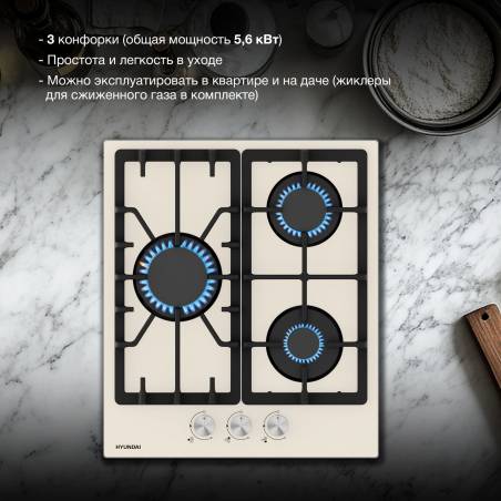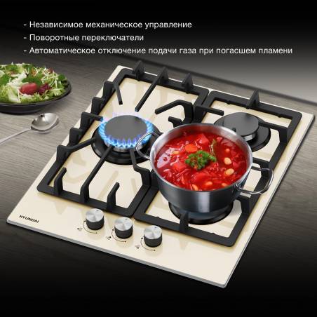Газовая варочная поверхность Hyundai HHG 4333 BE бежевый