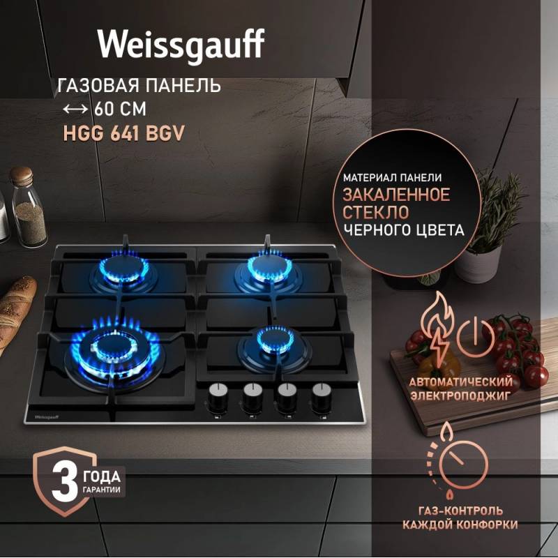 Газовая варочная поверхность Weissgauff HGG 641 BGV черный