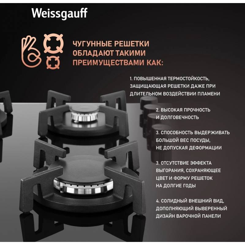 Газовая варочная поверхность Weissgauff HG 640 BGV черный