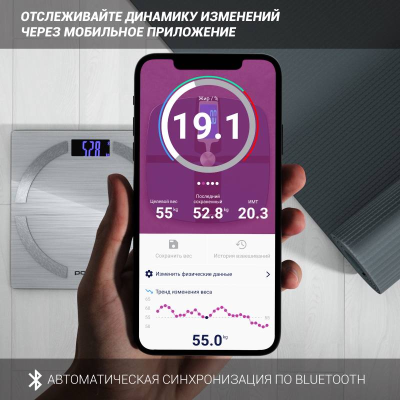 - Управление через мобильное приложение IQ Home. Объем памяти на 20 пользователей. Сенсорная система для максимально точного измерения веса. Автоматическая синхронизация с мобильным устройствами на базе Android и iOS посредством Bluetooth. Индикация превыше