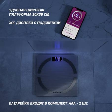 Весы напольные электронные Polaris PWS 1886 IQ Home макс.180кг серебристый