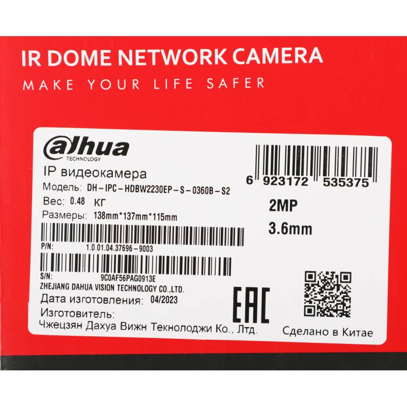 Камера видеонаблюдения IP Dahua DH-IPC-HDBW2230EP-S-0360B-S2 3.6-3.6мм цв. корп.:белый