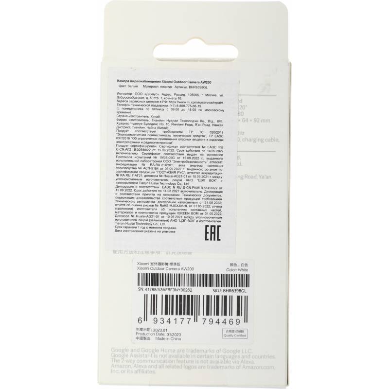 - Xiaomi Outdoor Camera AW200, кабель Type-C , крепеж, руководство по эксплуатации