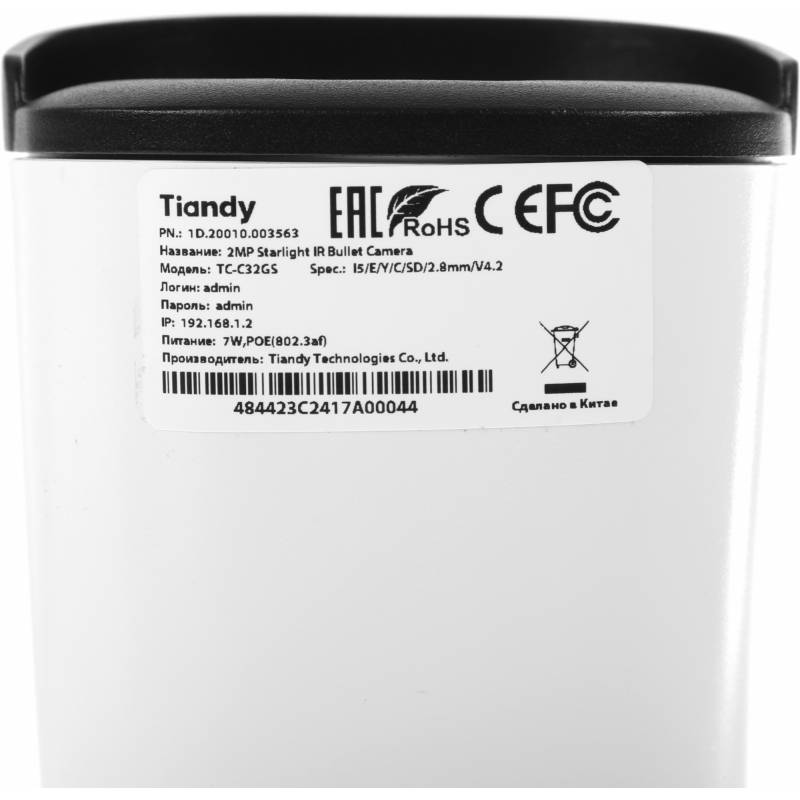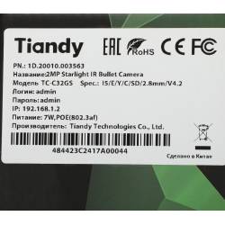 Камера видеонаблюдения IP Tiandy TC-C32GS I5/E/Y/C/SD/2.8mm/V4.2 2.8-2.8мм цв. корп.:белый (TC-C32GS I5/E/Y/C/SD/2.8/V4.2)