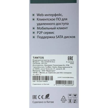 Видеорегистратор Tantos TSr-UV0416 Eco