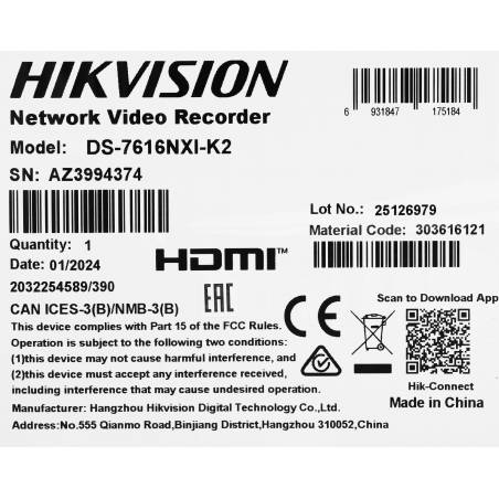 Видеорегистратор Hikvision DS-7616NXI-K2