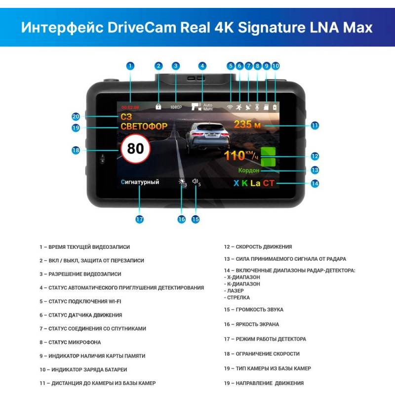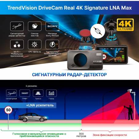 Видеорегистратор с радар-детектором TrendVision DriveCam Real 4K Signature LNA Max GPS ГЛОНАСС черный