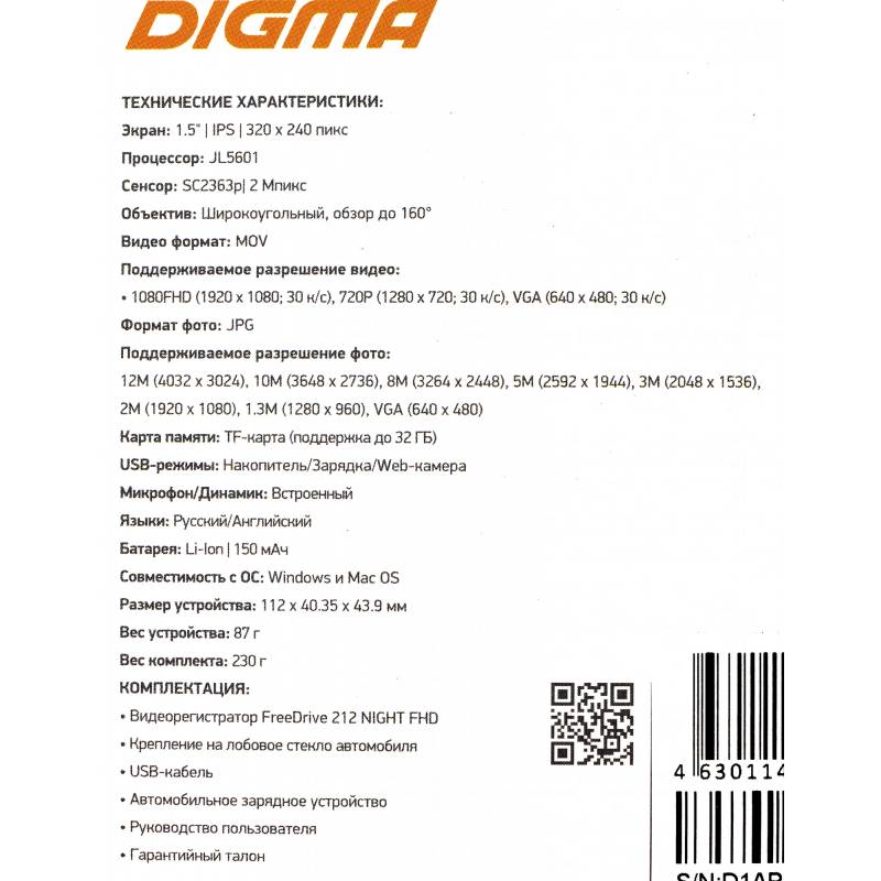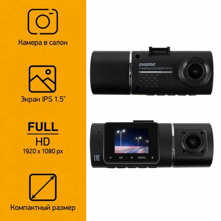 Видеорегистратор Digma FreeDrive 212 NIGHT FHD черный 2Mpix 1080x1920 1080p 160гр. JL5601