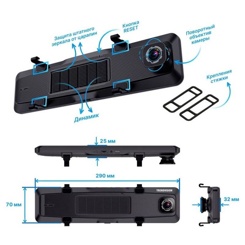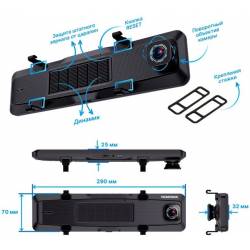 Видеорегистратор TrendVision aMirror 15 Android UNIVERSE черный 1080x1920 1080p 140гр. GPS внутренняя память:64Gb UIS8581A