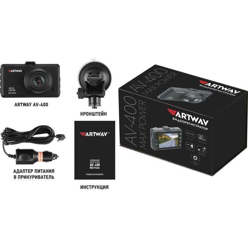 Видеорегистратор Artway AV-400 Max Power черный 2Mpix 1080x1920 1080i 170гр.