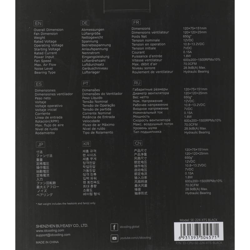Устройство охлаждения(кулер) ID-Cooling SE-224-XTS Soc-AM5/AM4/1200/1700/1851 черный 4-pin 29dB Al+Cu 220W 650gr Ret (SE-224-XTS