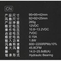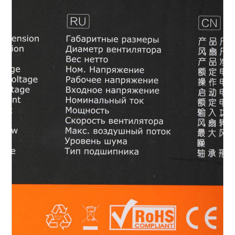 - Диаметр вентилятора